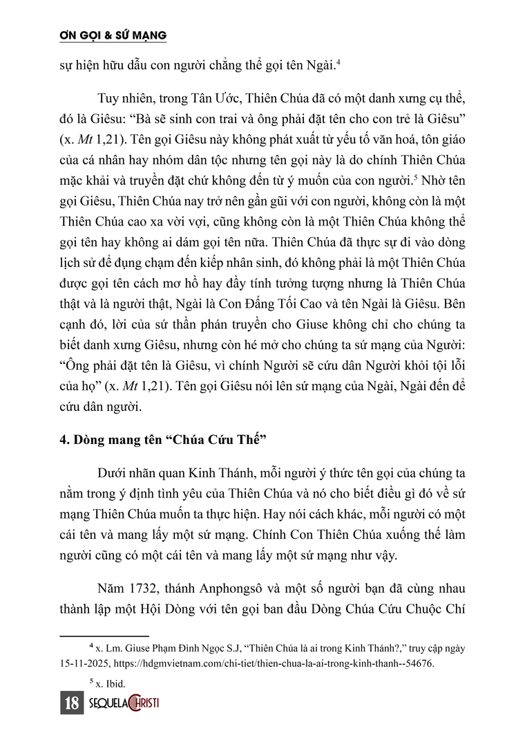 DÒNG MANG TÊN CHÚA CỨU THẾ