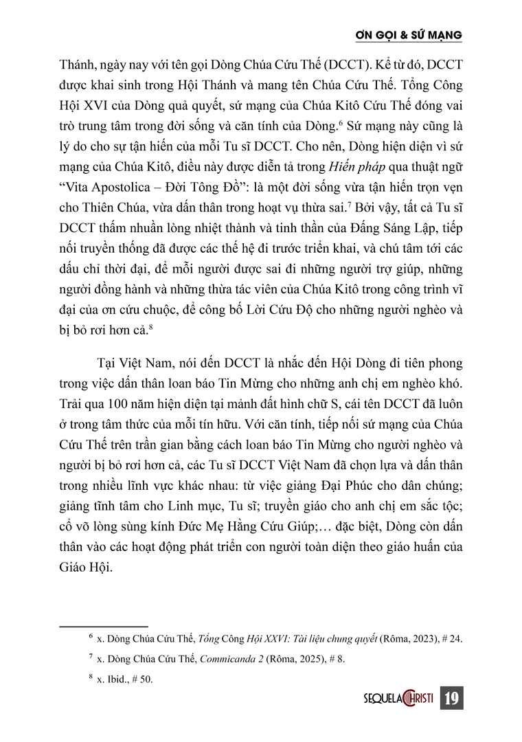 [SQ 35] Tu sĩ thừa sai Dòng Chúa Cứu Thế với sứ vụ hoà giải và hiệp nhất