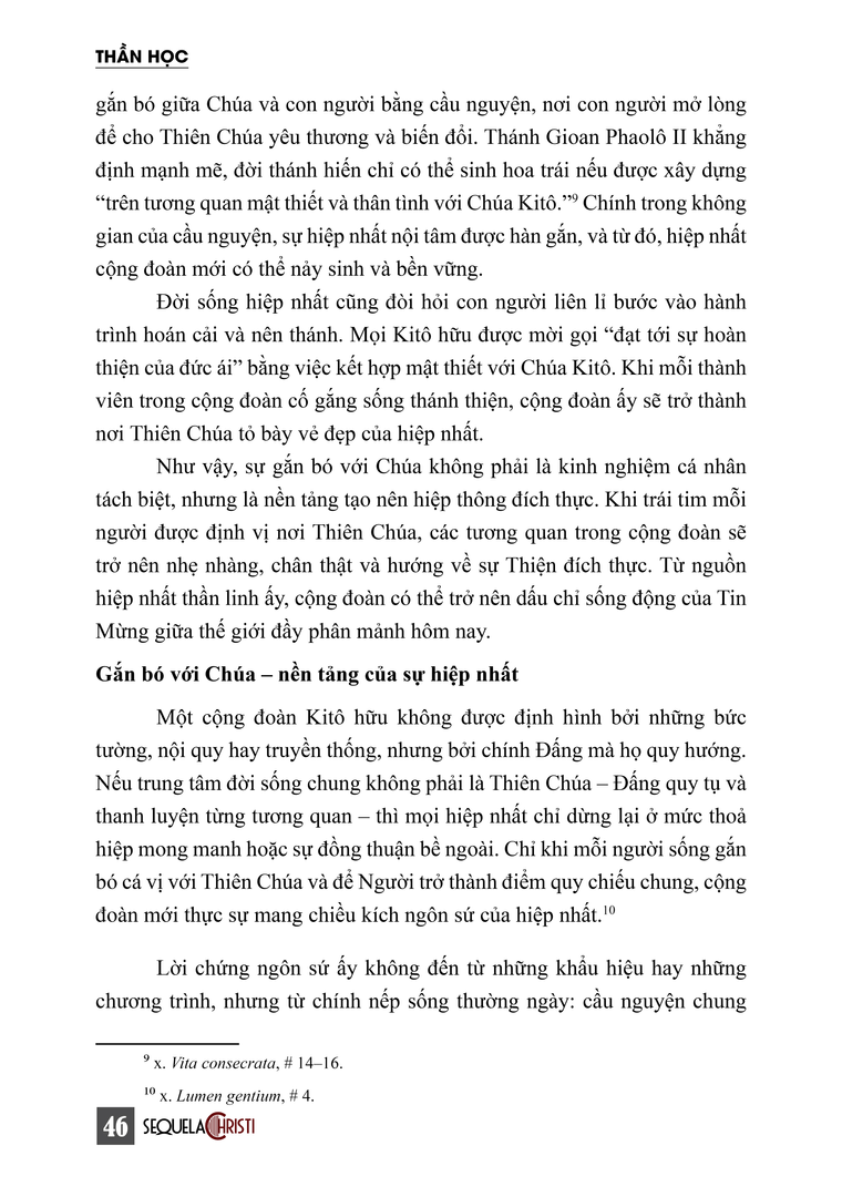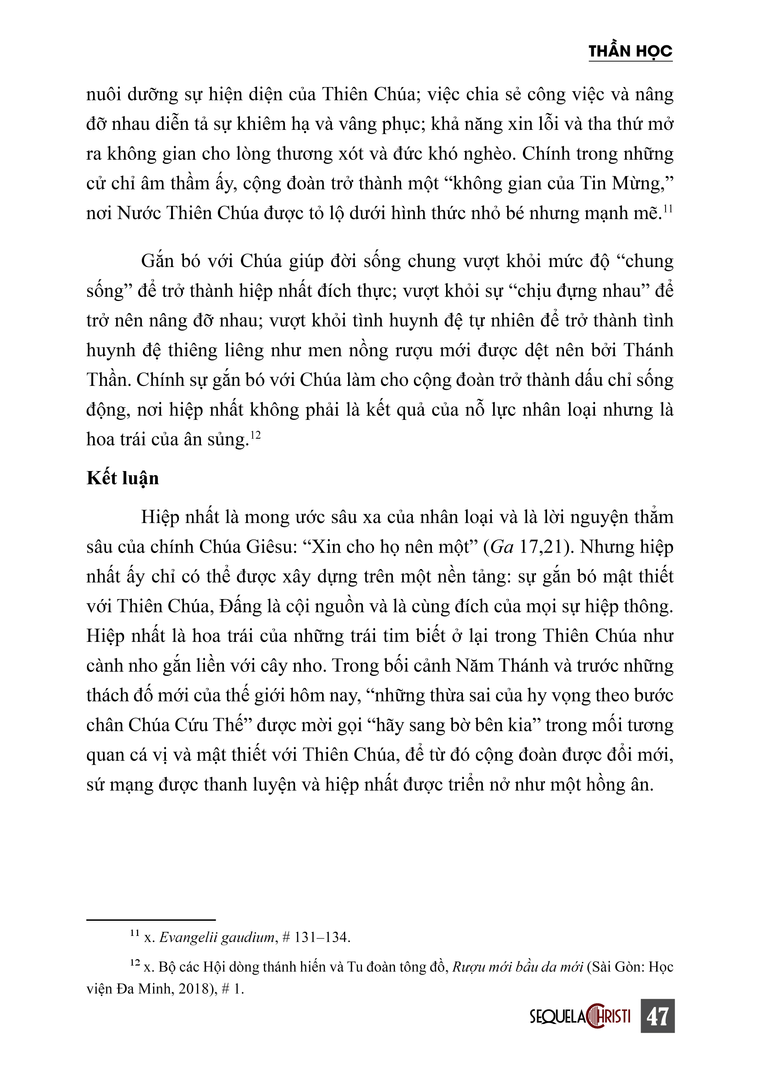 GẮN BÓ VỚI CHÚA - NỀN TẢNG CỦA SỰ HIỆP NHẤT