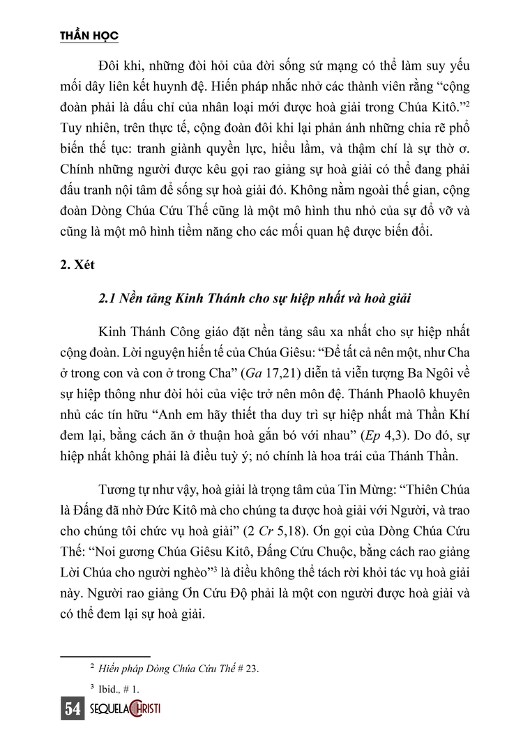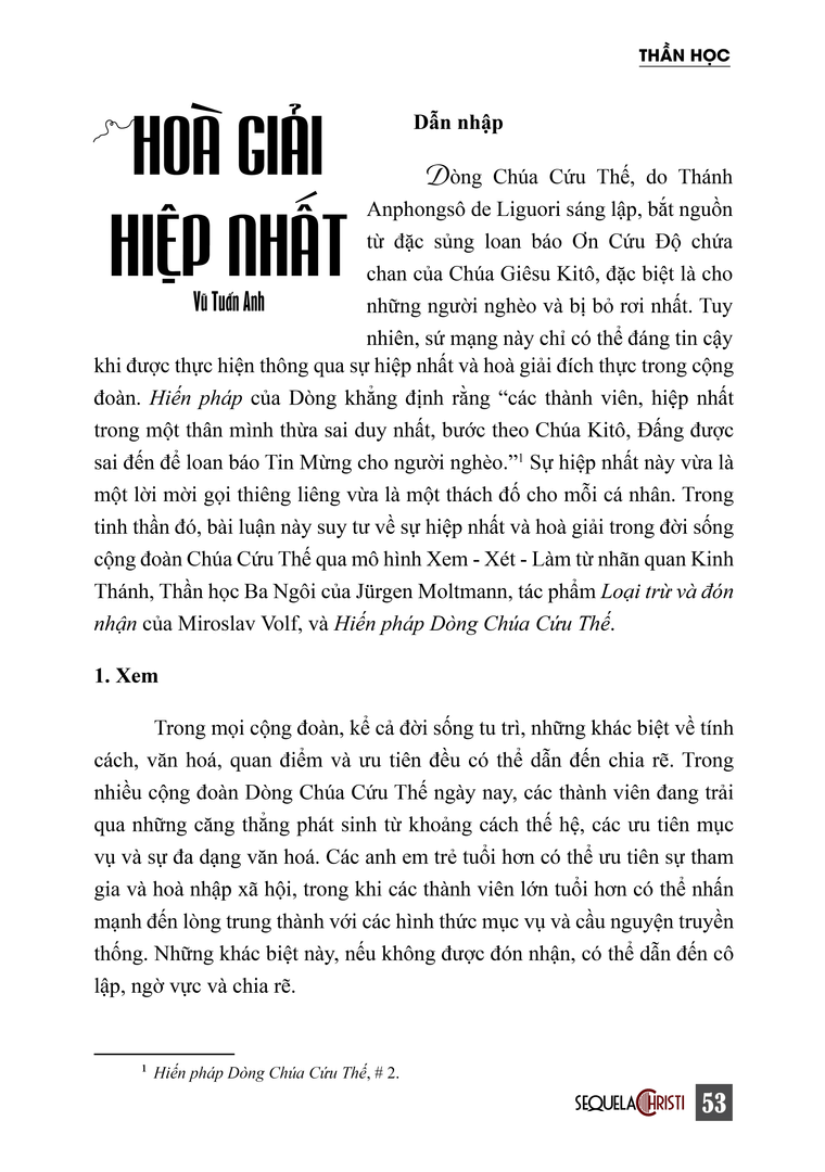 [SQ 35] Tu sĩ thừa sai Dòng Chúa Cứu Thế với sứ vụ hoà giải và hiệp nhất