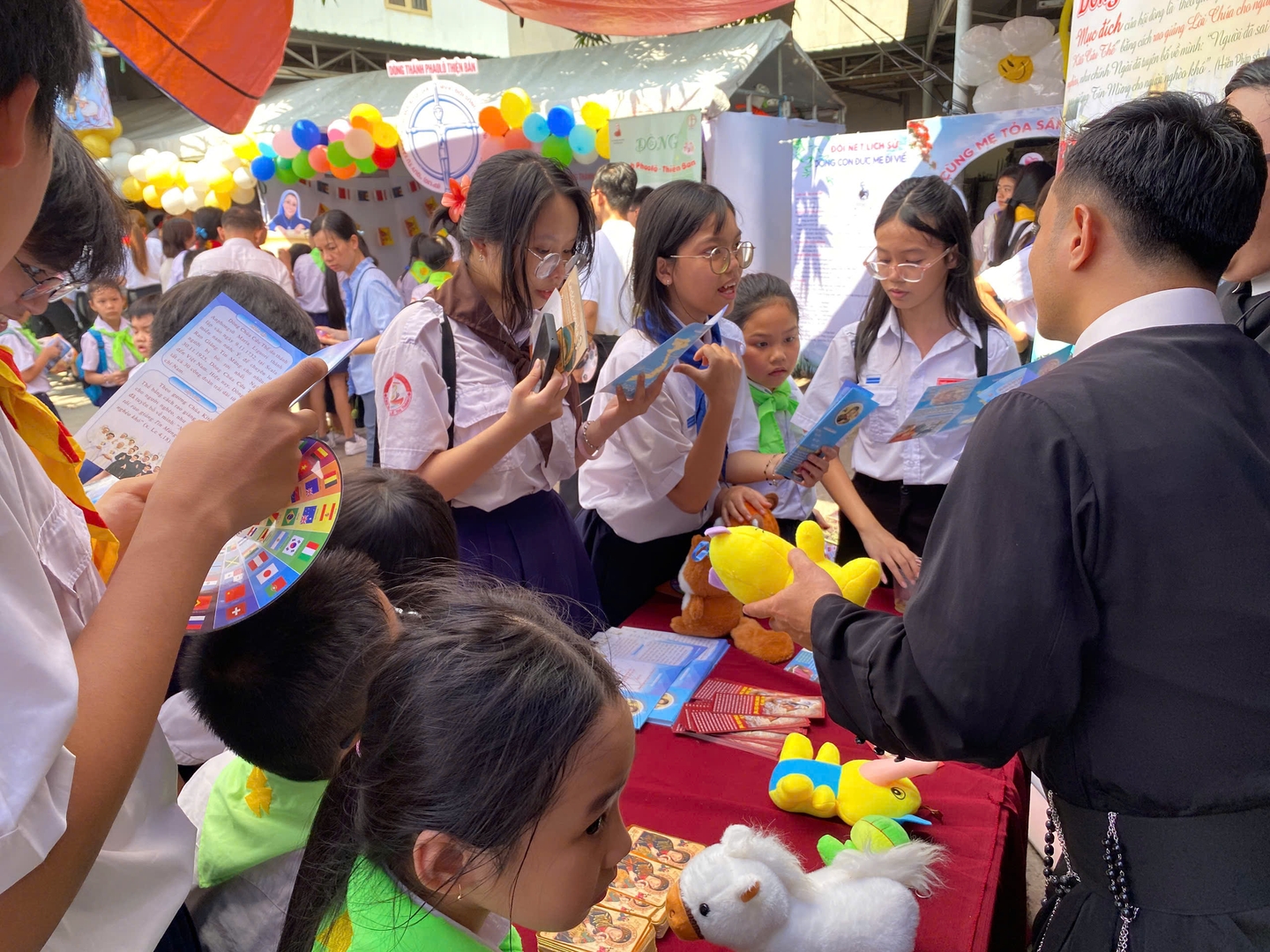 Sáng Chúa nhật ngày 26/4, vào lúc 8h00 đã diễn ra thánh lễ đồng tế cầu nguyện cách đặc biệt cho ơn gọi Linh mục, Tu sĩ do Cha Hạt trưởng Hạt Tân Sơn Nhì chủ tế. Sau thánh lễ, trong khuôn viên của Giáo xứ đã trở nên rộn ràng với hoạt động giới thiệu các gian hàng của các Hội Dòng. Mỗi gian hàng là một câu chuyện sống động về linh đạo, sứ mạng và đời sống thánh hiến. Qua những hình ảnh, hiện vật và những chia sẻ trực tiếp từ quý Tu sĩ, các bạn trẻ có cơ hội tìm hiểu sâu hơn về các ơn gọi trong Giáo hội, đồng thời khám phá con đường mà Thiên Chúa có thể đang mời gọi mình bước theo.