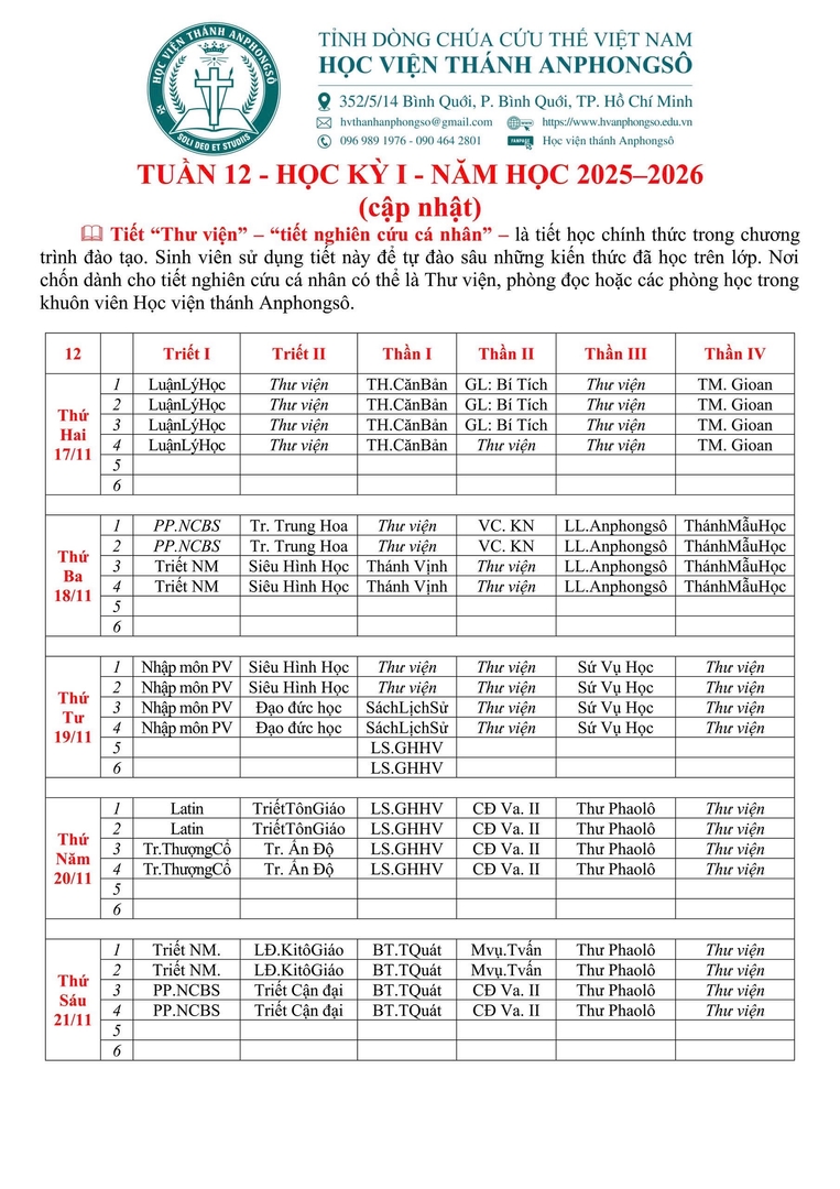 LỊCH HỌC TUẦN 12 - HK II (2025-2026)
