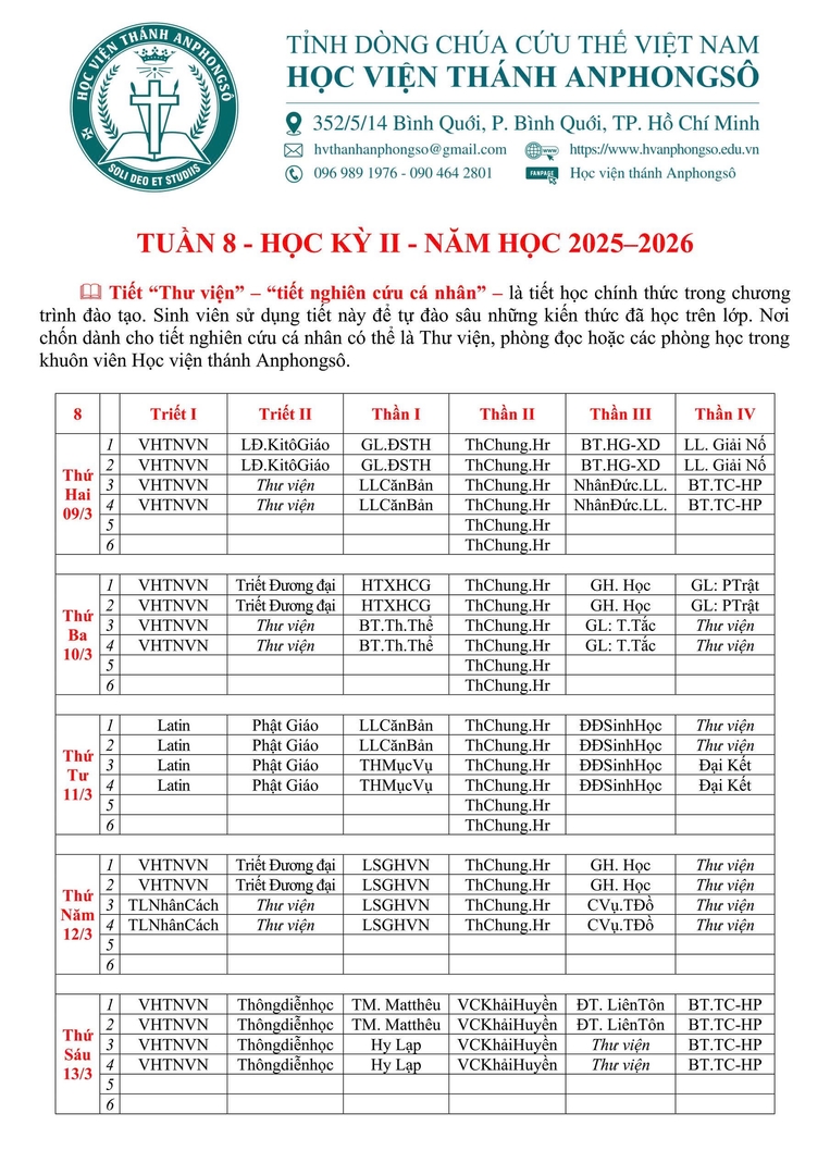 LỊCH HỌC TUẦN 8 - HK I (2025-2026)