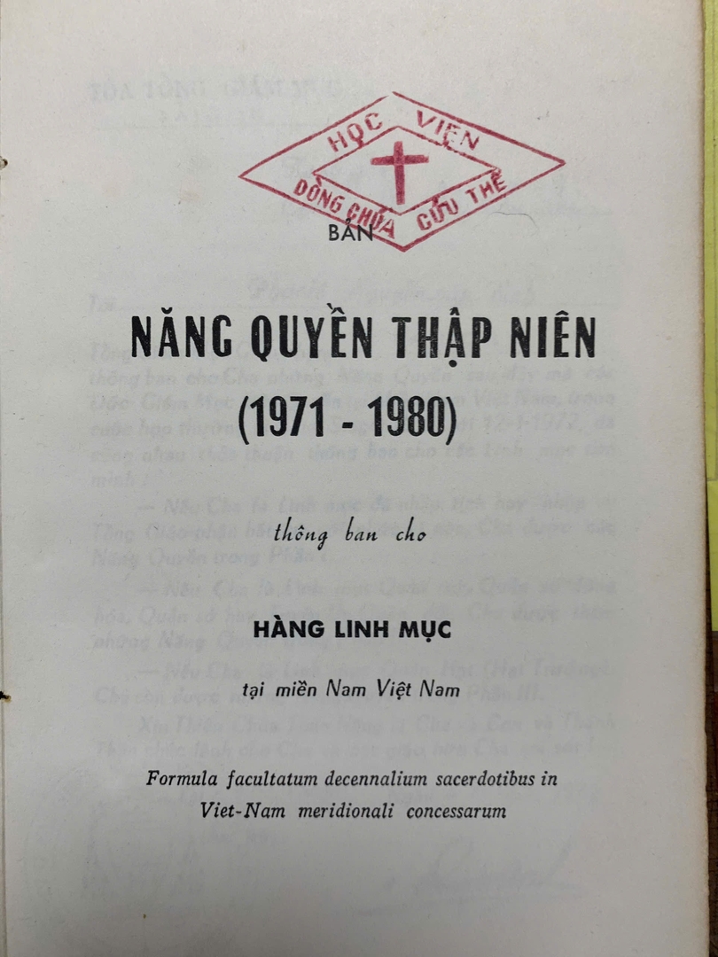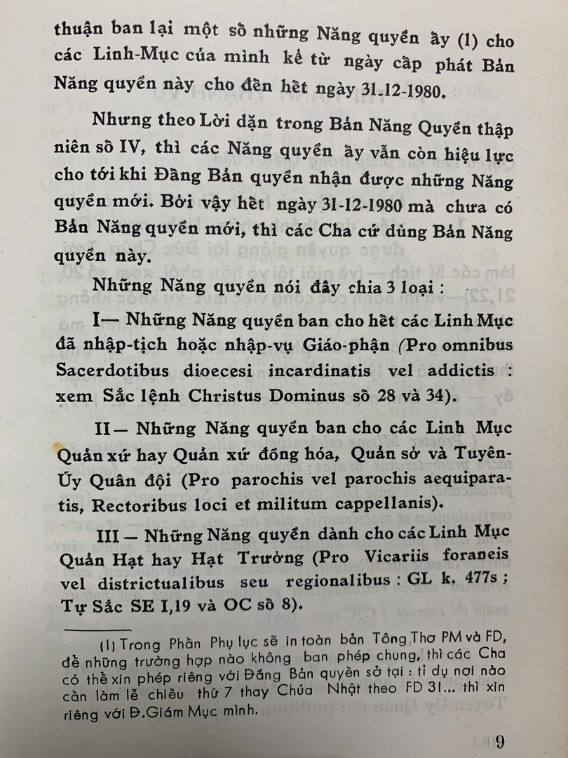 2. Theo lời dặn trong Bản Năng quyền thập niên số IV, thì các năng quyền ấy vẫn còn hiệu lực cho tới khi Đấng Bản Quyền nhận được những năng quyền mới. Bởi vậy hết ngày 31-12-1980 mà chưa có Bản Năng Quyền mới, thì các cha cứ dùng Bản Năng Quyền này (Bản năng quyền thập niên 1970-1980, 9).