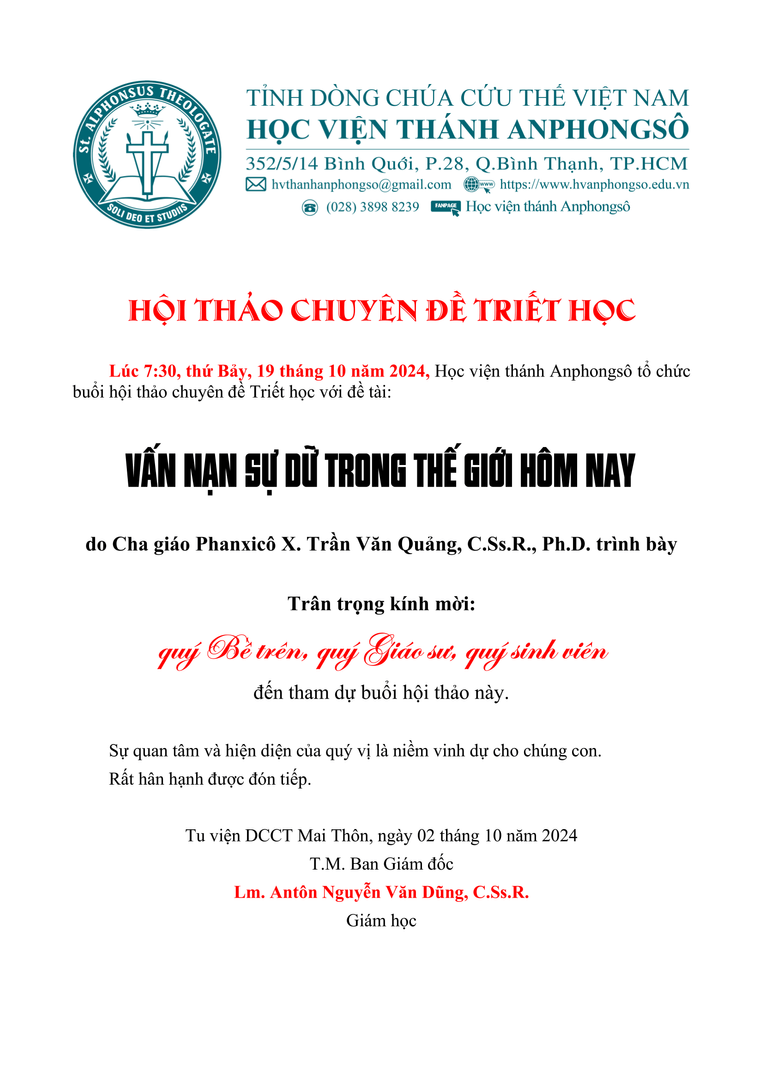 Hội thảo chuyên đề Triết học: Vấn nạn sự dữ trong thế giới hôm nay - 19.10.2024
