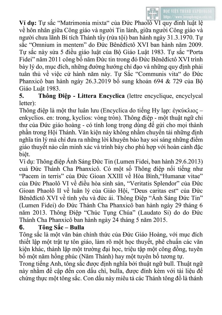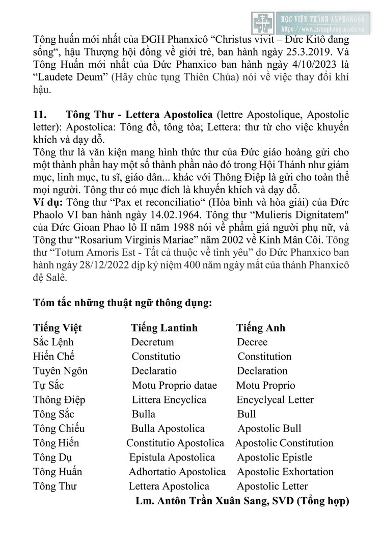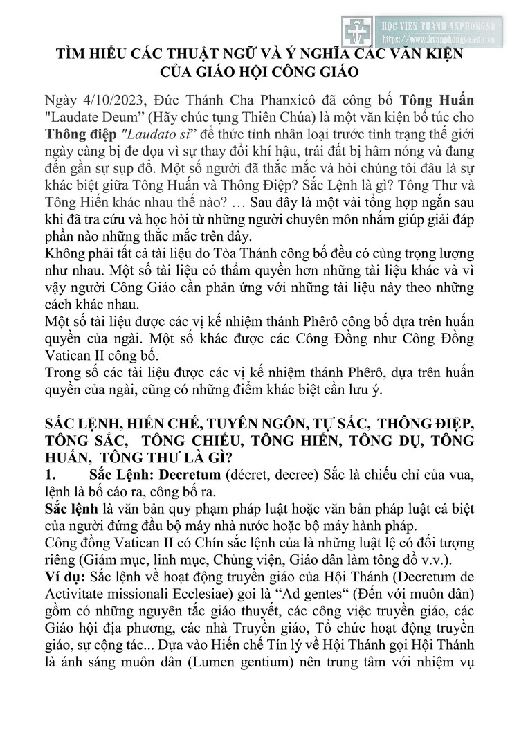 Tìm hiểu các thuật ngữ và ý nghĩa các văn kiện của Giáo hội Công giáo
