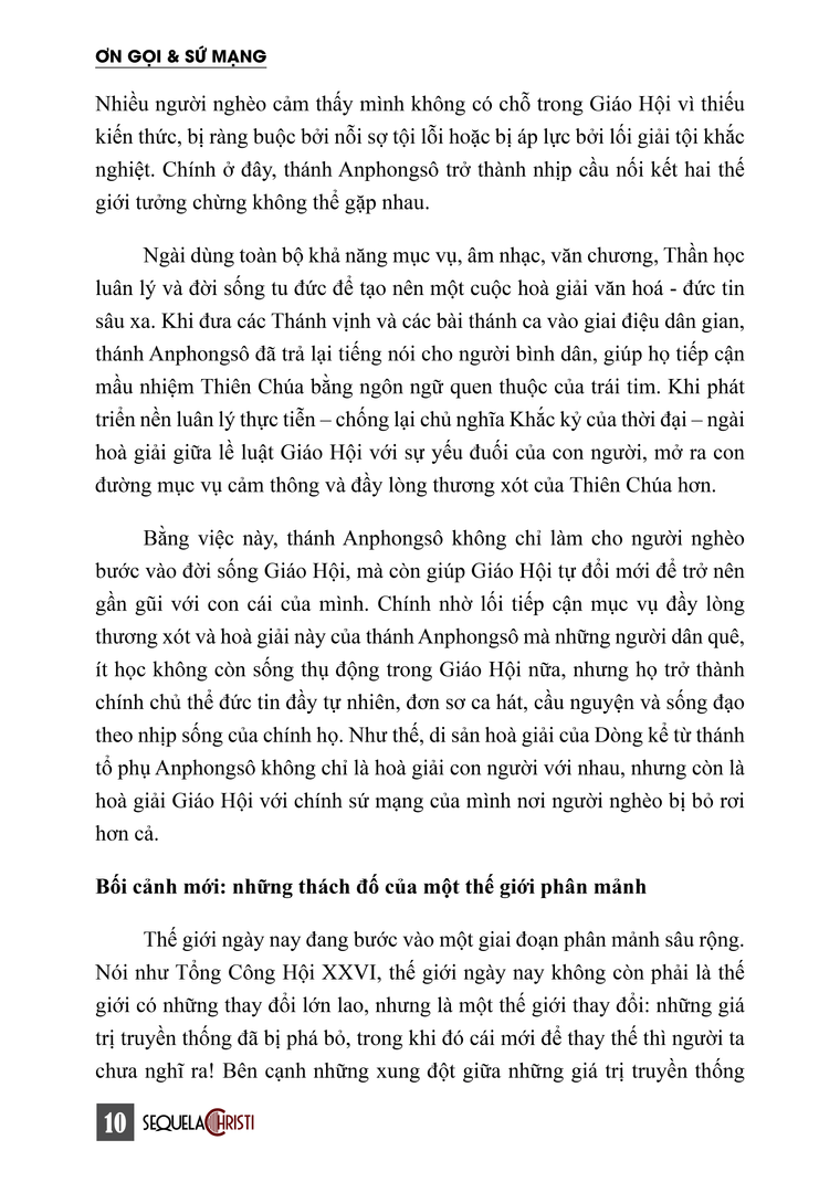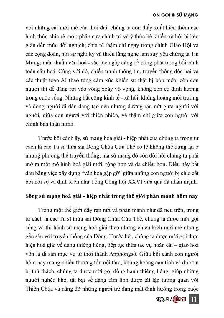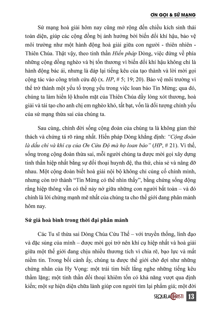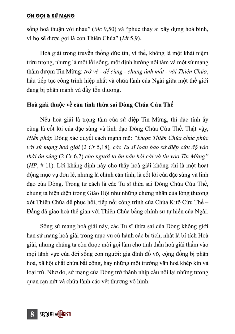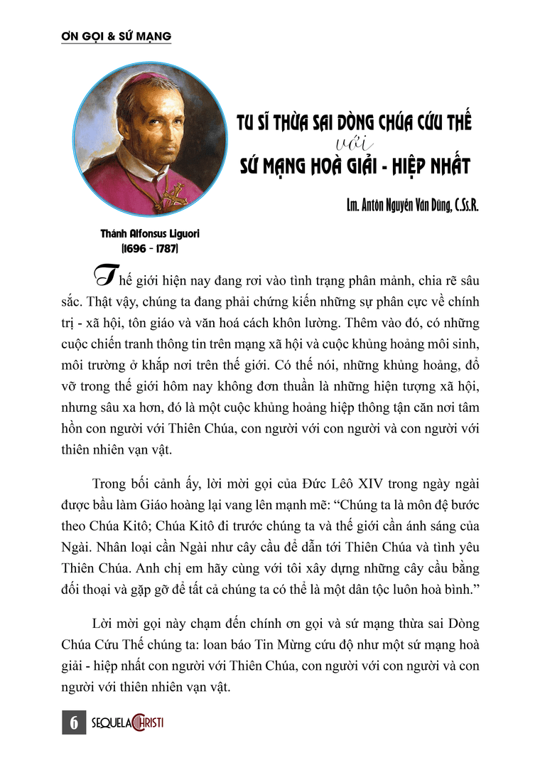 [SQ 35] Tu sĩ thừa sai Dòng Chúa Cứu Thế với sứ vụ hoà giải và hiệp nhất